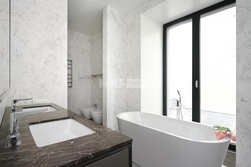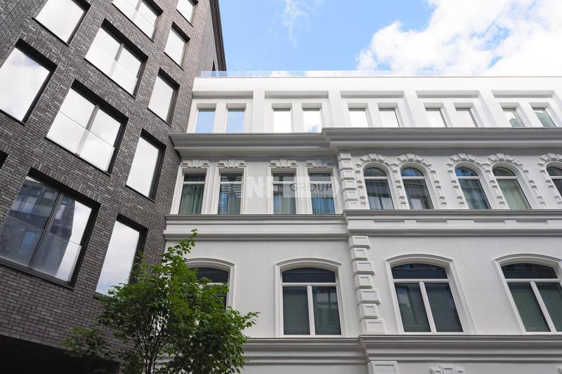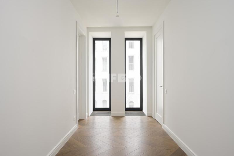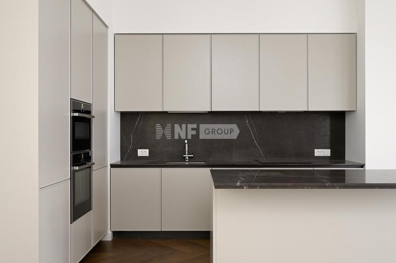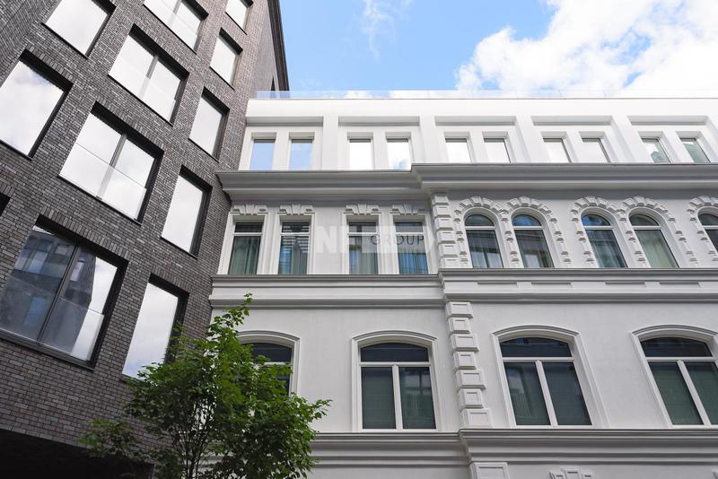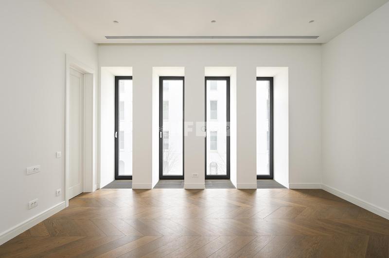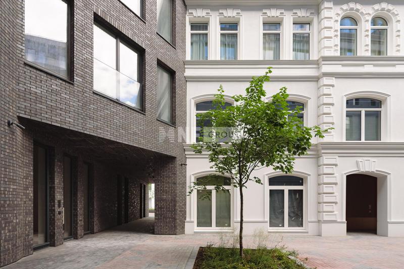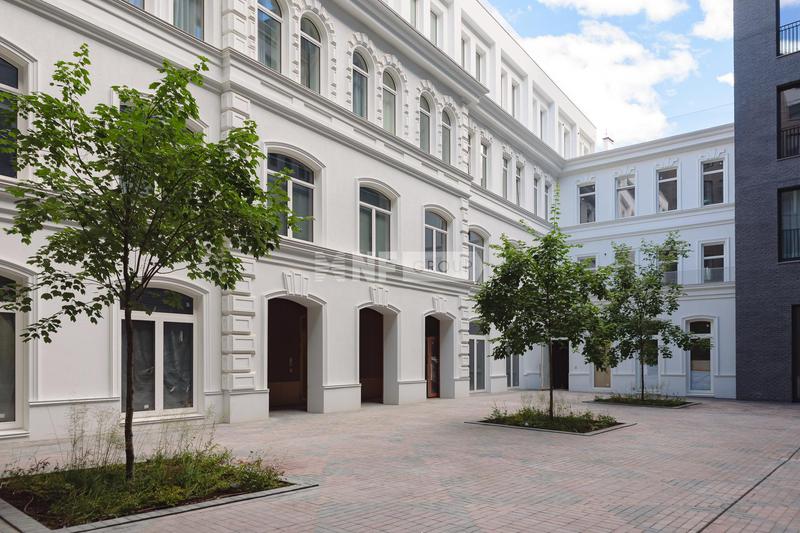 Интерьеры в стиле «современная классика» разработаны бюро «Цимайло, Ляшенко и партнеры»: светлые оттенки, выверенные формы и натуральные материалы. Четырехэтажный особняк продолжает классический стиль, в нем всего 8 квартир для ценителей камерной атмосферы. Квартиры продаются с финишной отделкой, оборудованными ванными комнатами и кухнями: мрамор, паркетные полы из дерева твердых пород, бытовая техника премиального класса.